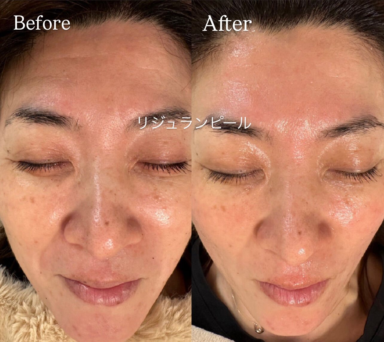お写真は40代のお客様がリジュランピールを受けた後のビフォーアフターです。